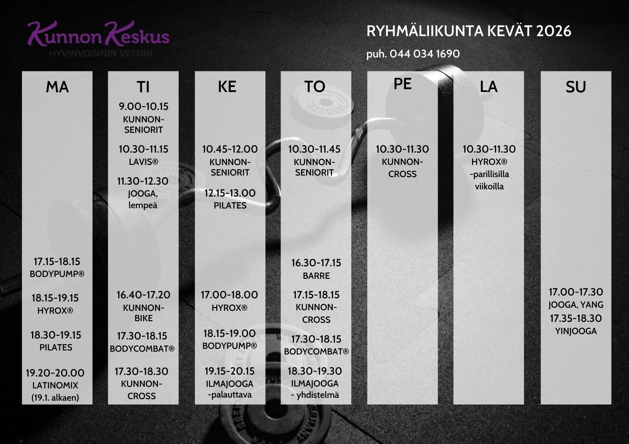 Ohjattujen tuntien aikataulut